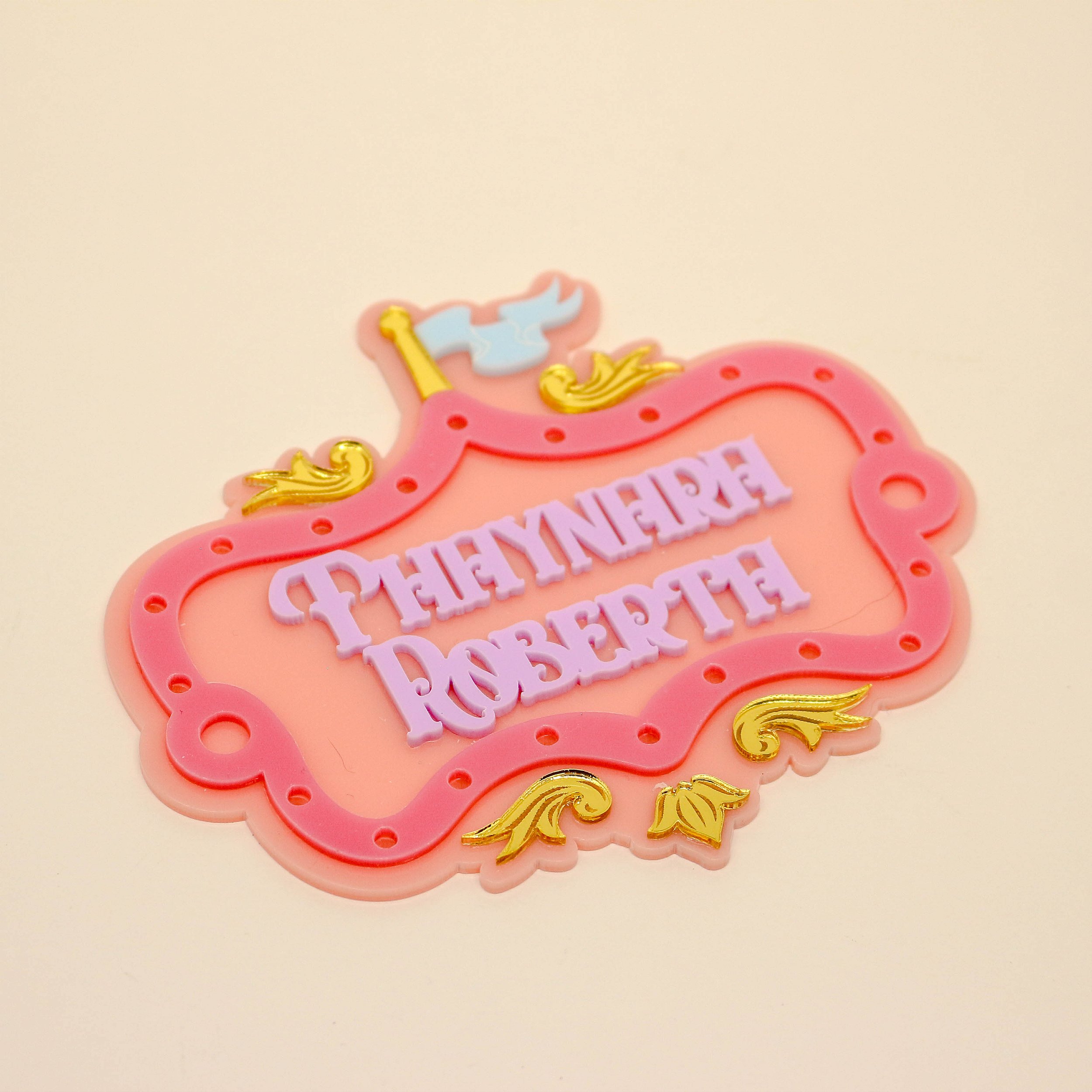 Aplique Kitkat Nome com Furos para LED - Circo Rosa - 12cm - 1 unidade